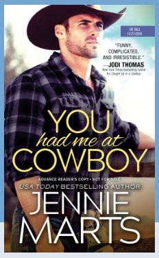 I’ve always had a soft spot in my heart for small towns, cowboys, and main characters with close-knit families. You Had Me At Cowboy by Jennie Marts checked each of those boxes for me in some very delightful ways.